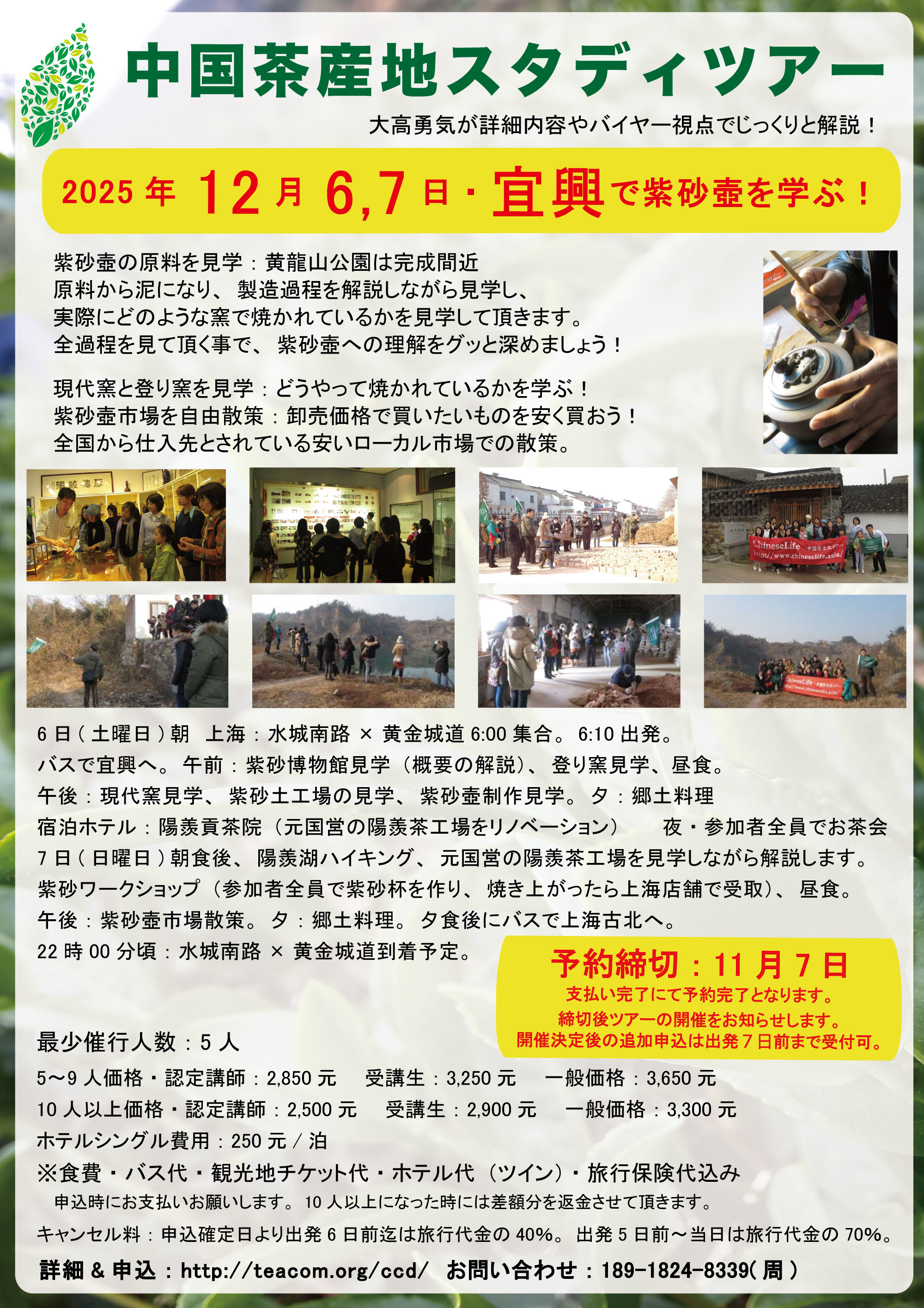日本から参加される方もいらっしゃり、最小催行人数に満たない場合中止とさせて頂きますが、飛行機のチケットの関係もありますので、出発日の30日前を締切とさせて頂きます。ご理解、ご協力のほどよろしくお願いいたします。